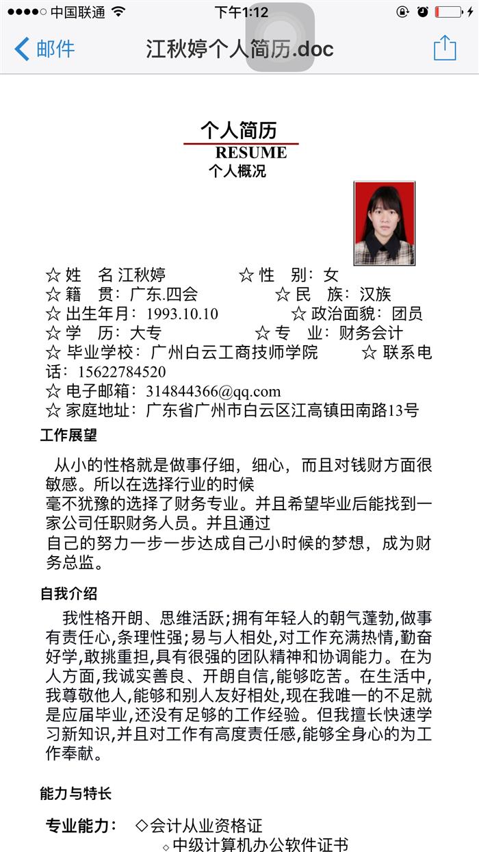 具体简历,我可以发送给您。太多了,自我评价写不完